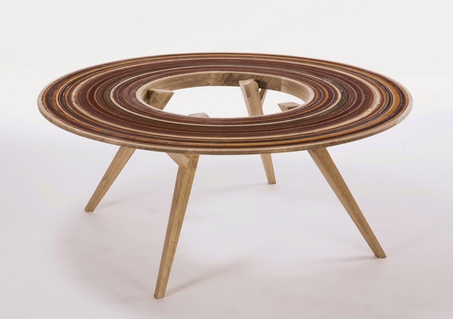 Detrás de estas espectaculares piezas con un diseño tan trabajado se esconde una técnica inédita y muy original. Consiste en forrar la superficie con lija, fijarla en un torno y lijar en ella varios tipos de madera. Con ello se consigue diferentes tonalidades.