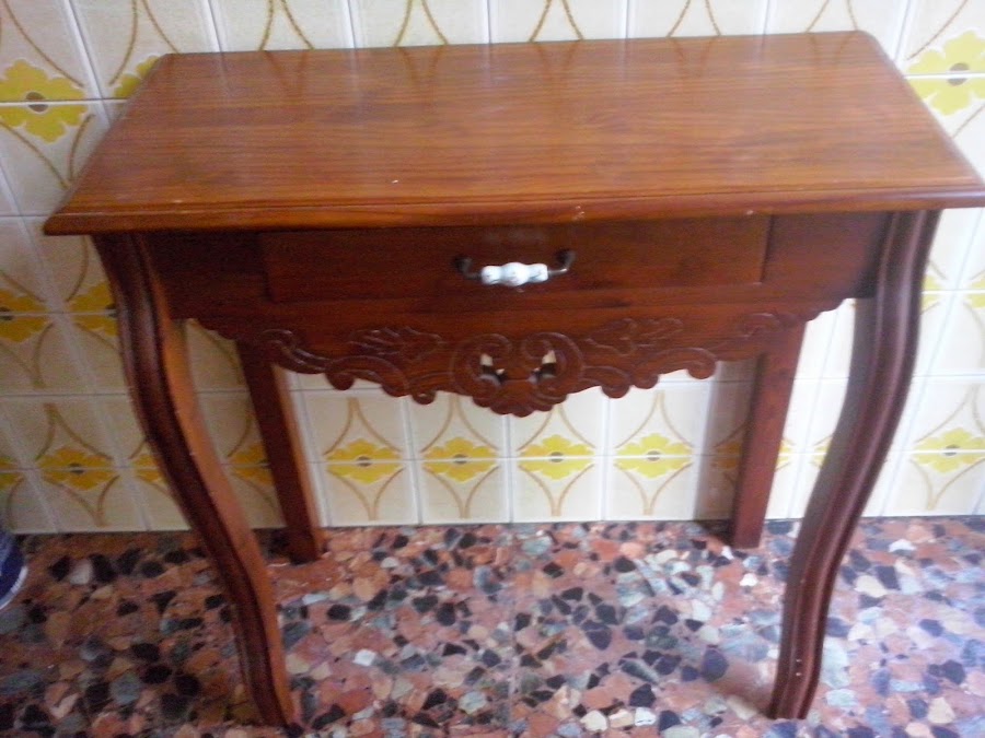 Proceso: lijado, selladora, varias manos de esmaltado, y resaltado desgastando