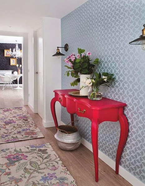Pero a veces hay que atreverse a romper la monotonía e introducir un poco de color. No me canso de ver esos magníficos reportajes de las revistas de decoración en los que un mueble especial, una cómoda, una consola, una vitrina, el cabecero de una cama..., en un color intenso y en contraste con el resto de la decoración aporta un toque original, atrevido a una habitación. Y lo mejor es que queda genial.