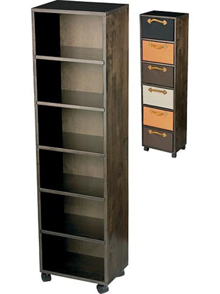 Este mismo modelo ha sido realizado con seis cajoneras dispuestas en vertical, lo que hace de este pequeño mueble una estantería algo más estrecha pero perfecta para el orden de las pequeñas estancias. También podrás escogerla entre wengué o marfil para resolver tus problemas de espacio, sin rechazar a unos llamativos cajones que aportarán el toque de color en el lugar donde ubiques este mueble.