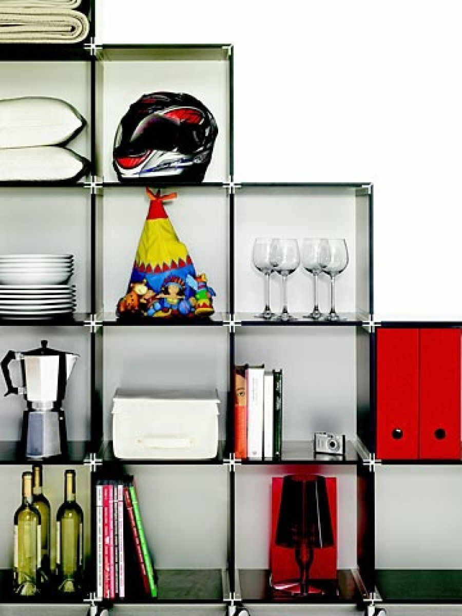 Con esta posibilidad, Estoli consigue una adaptabiliad tanto estética como funcional. Los módulos se completan con puertas, cajones, contenedores, ruedas y estantes, y pueden ir fijados a la pared o ser móviles mediante ruedas. Su atractivo radica en su acabado satinado, el laminado y el contrachapado de madera.