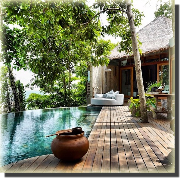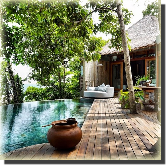 Comencemos por el pavimento. Debe ser antideslizante, sobre todo en la zona de la piscina si la hubiera.
