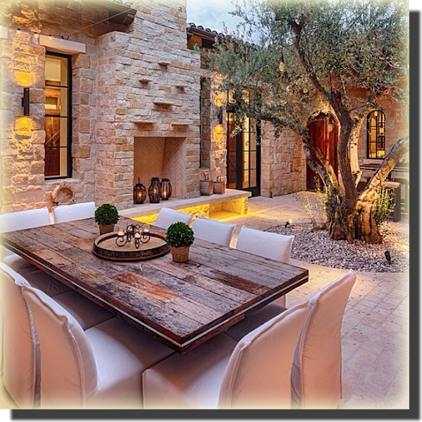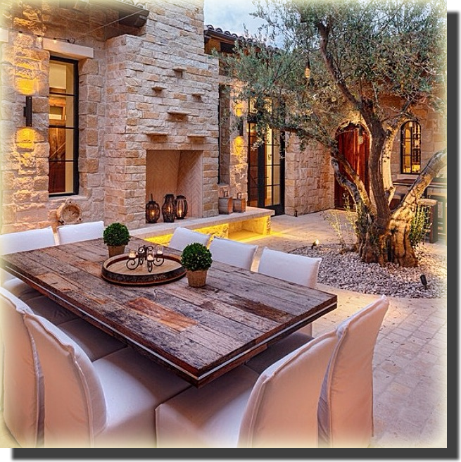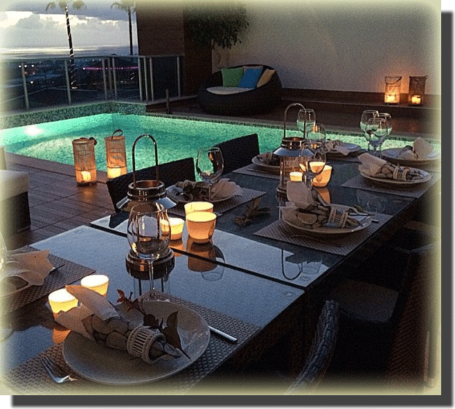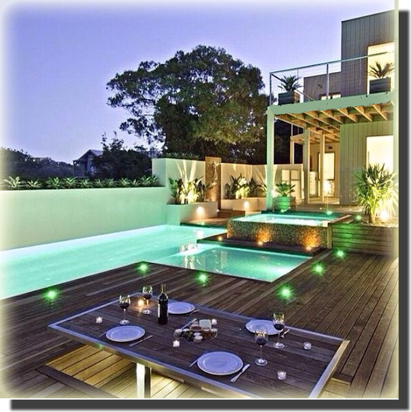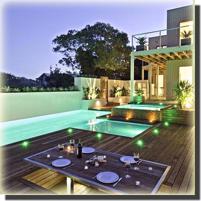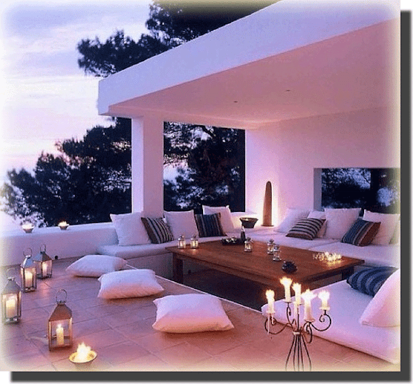 Combinar las luces ambientales, focos en los maceteros,velas...