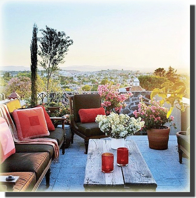 Coordina la decoración del interior con el exterior. Creará prolongación visual. Suelo, tejidos...