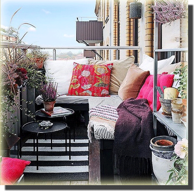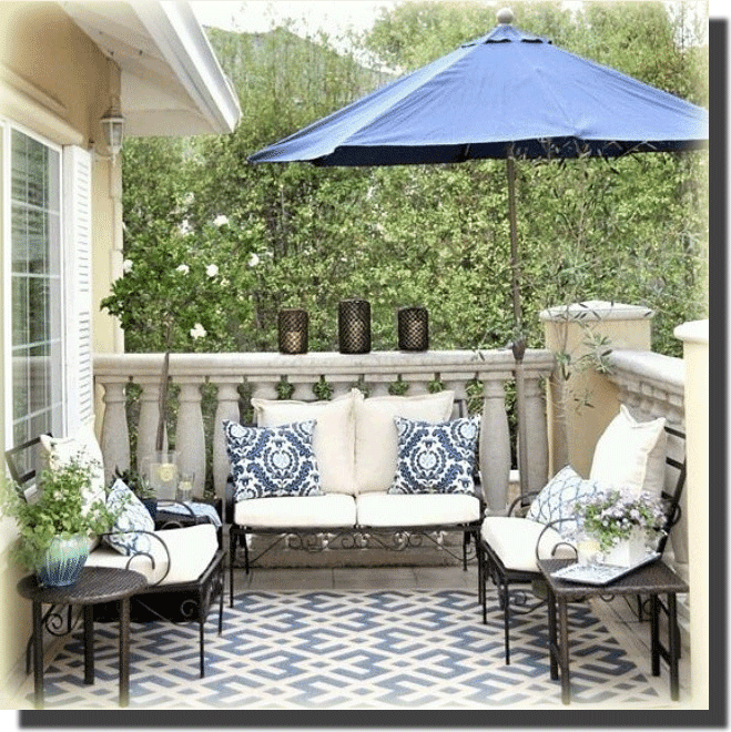 En espacios pequeños. Coloca los muebles pegados a la pared o barandilla