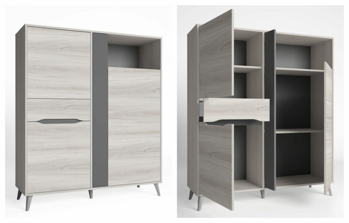 Los aparadores altos pueden alcanzar una altura considerable, la cual puede oscilar entre los 140 y 150 centímetros; tal como ocurre con el modelo Eris, un aparador elaborado en melamina con acabado en shamal pizarra.