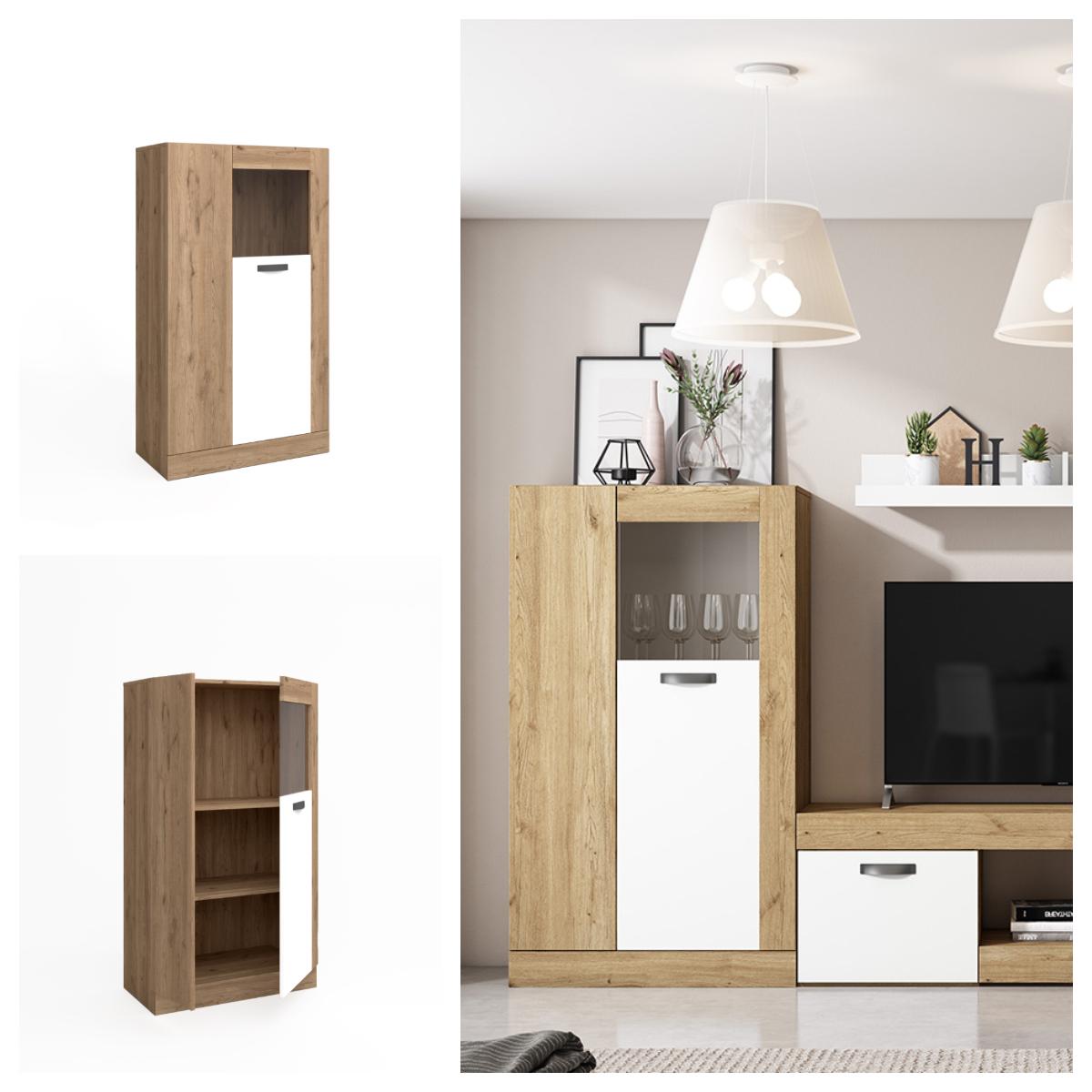 Si se trata de muebles altos y modulares, el módulo Hera es la pieza perfecta para destacar la versatilidad de estas composiciones. La ventaja de los muebles de salón altos y modulares es que mantienen su carácter útil en solitario o en conjunto.Este mueble alto además de ser una hermosa pieza decorativa para el salón gracias a su hermoso contraste de colores, es realmente útil para exhibir aquellas piezas u objetos que se desea mantener a la vista y reservar de forma discreta aquellas que no resultan tan decorativas. Gracias a sus dimensiones, es posible almacenar objetos y aprovechar su capacidad tanto en altura como en profundidad.