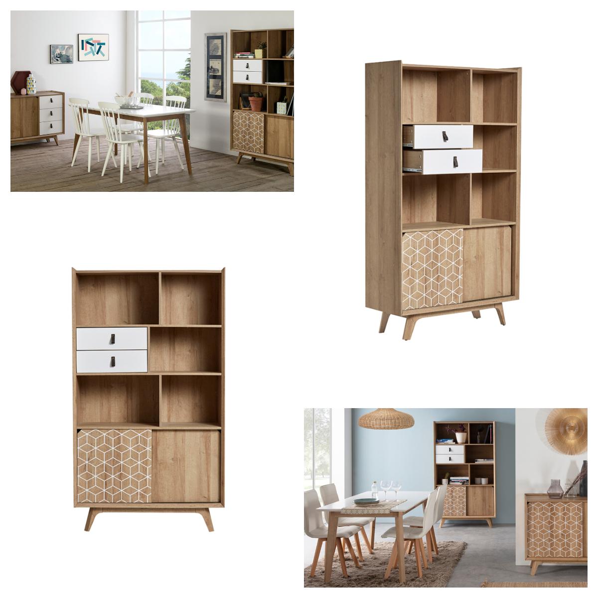¿Qué opinas del mueble auxiliar Allen? ¿No crees que este mueble de madera de pino luciría genial en tu salón? De igual modo, puedes encontrar en el mercado otros modelos elaborados en MDF o melamina, como el modelo de librería Hut; un material más económico con un alto nivel de resistencia y belleza.