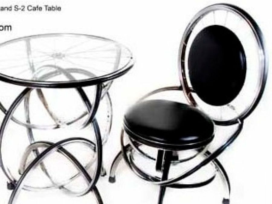 Estos diseños se tratan de conjuntos de mesas y sillas realizados con desechos de bicicleta, sobre todo con sus ruedas. Son de Bike Furniture Design y desde su web incluso animan aque les enviemos nuestros restos de bicicletas.