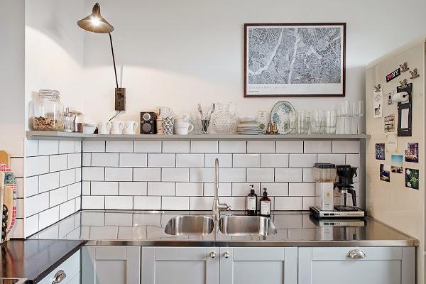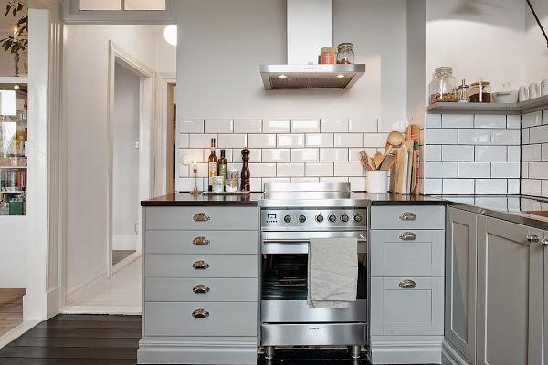 En el ecuador de la semana descubrimos esta fantástica vivienda, envidiable por muchos conceptos, pero sobre todo por el magnífico y viejo aparador de cocina rescatado de un anticuario, al igual que la antigua báscula que se ha colocado sobre el y los recortes de antiguos menús que decoran la pared.