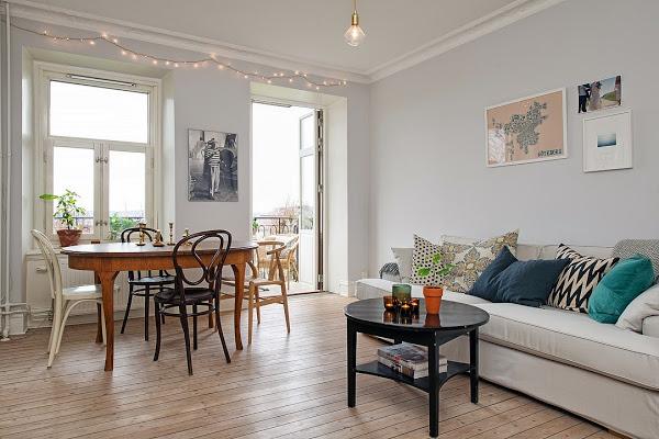 Aunque la cocina es mi estancia favorita de la casa, en el resto de la vivienda también encontramos elementos reciclados y recuperados, como la alacena del salón, que comparte espacio con el resto de mobiliario de estilo nórdico.