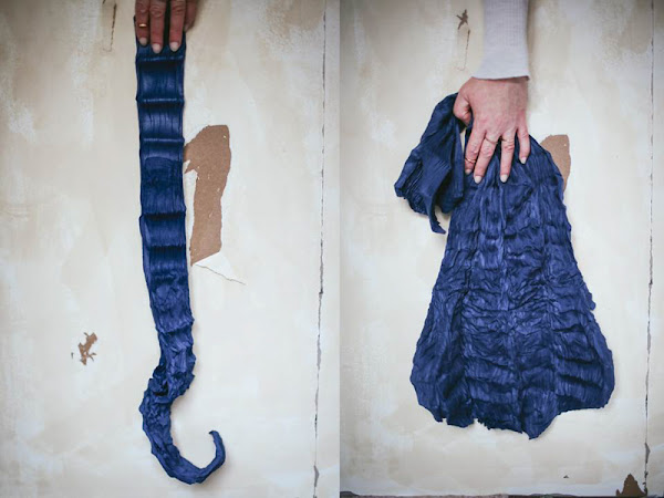 forma de canto rodado y una camiseta de algodón con textura arrugada.
