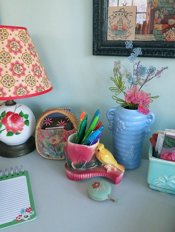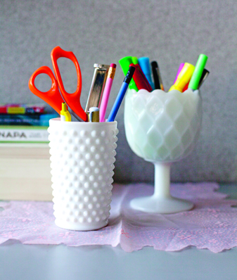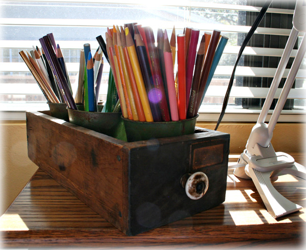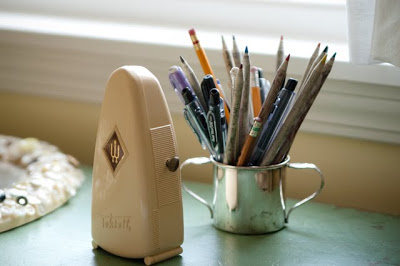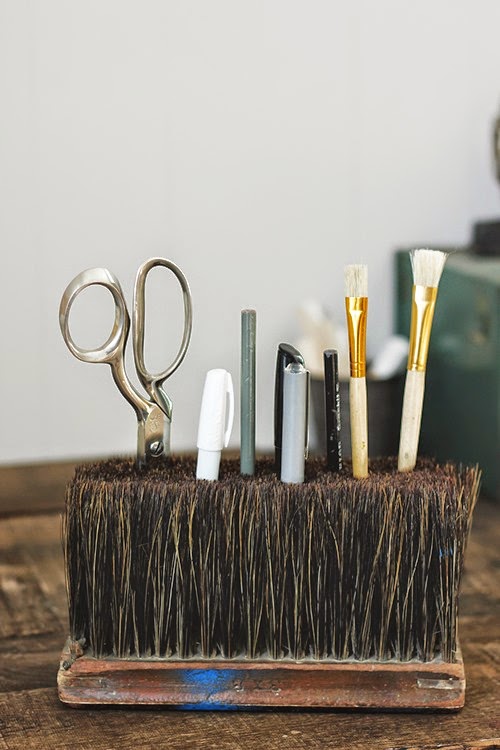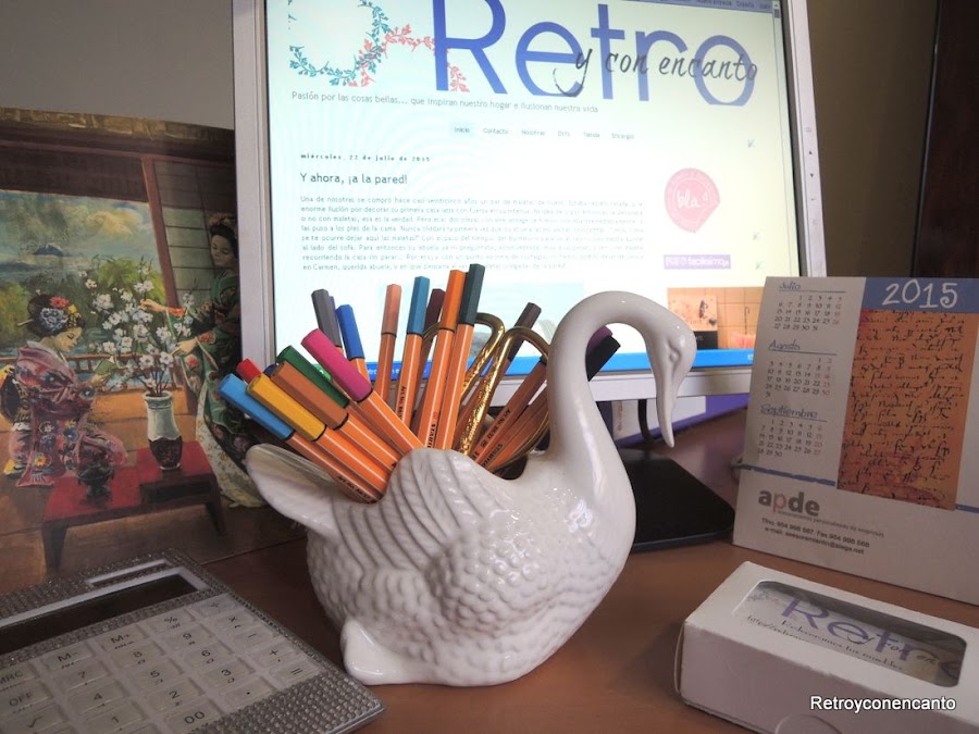 Nos ha encantado la idea de las tacitas de peltre para nuestros bolis y lápices del taller, pero de momento nuestro cisne nos va dando el avío muy decorativamente... Y vosotr@s, ¿dónde colocáis los vuestros?
