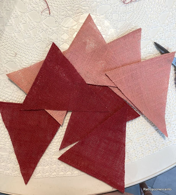 Conseguimos ocho banderines, cuatro de cada tono de rosa...,