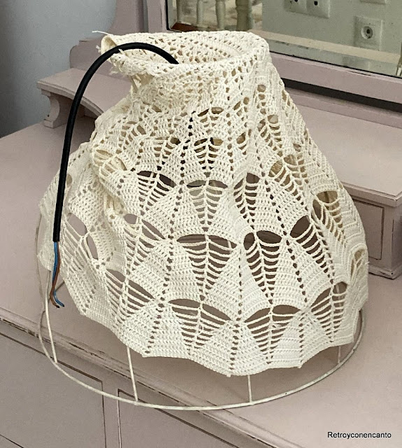 Os preguntaréis qué ha sido de la funda de ganchillo. Por supuesto, se encuentra recién lavadita a muy buen recaudo, y esperando a ser colocada en su lámpara. Pero nos ha gustado tanto el resultado final que hoy os mostramos, que vamos a disfrutarla unos días así...