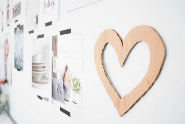 En el pedido que hice a Shop nórdico me enviaron algunas postales de House Doctor, que usé para decorar la pared. La casita de arcilla de El gato con pajarita, recortes de revistas y un corazón de cartón acaban de completar esta especie de moodboard o panel con imágenes que me inspiran.