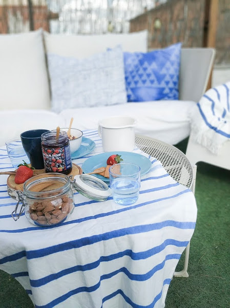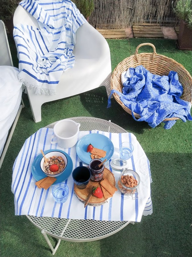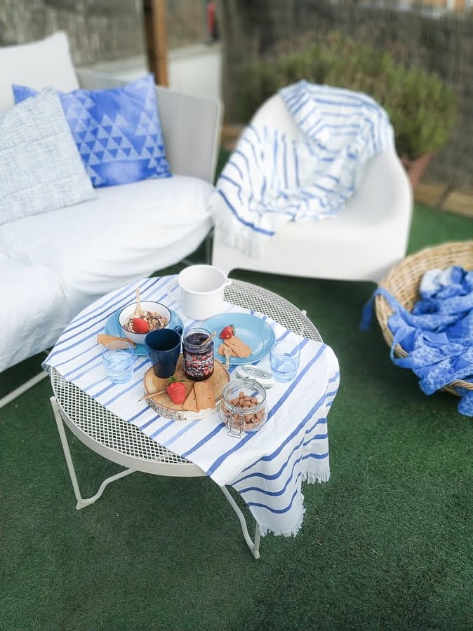 Como en Barcelona ya empiezan a asomarse los primeros días de sol, nos pareció el mejor momento para salir a la terraza y montar un pequeño rinconcito. Aunque fue algo improvisado, no os podéis imaginar la alegría de desayunar otra vez fuera.