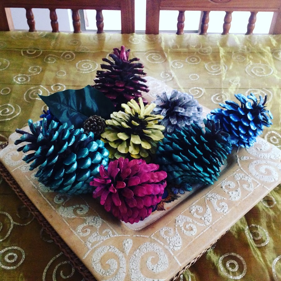 Viviendo en medio de un gran bosque de pinos y eucaliptus (por algo mi hogar es La Casa de la Laguna), es que lo que más tengo en casa son piñas de pino y las uso de diversas maneras para decorar.