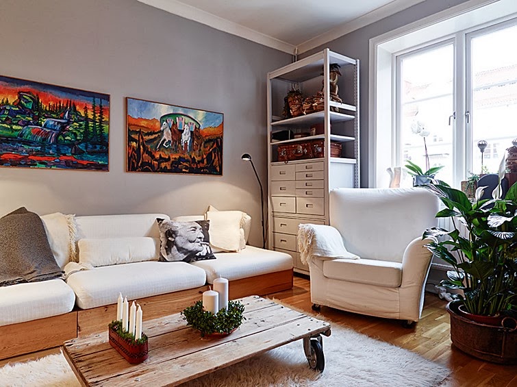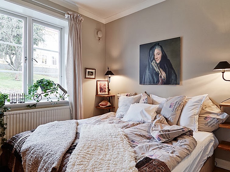 Techos altos, mucha luz natural, suelos de madera y prácticos armarios empotrados para almacenar, que junto a los accesorios y complementos DECO como las velas, la alfombra mullida, la ropa de cama, bonitas latas decoradas y montón de plantas muy bien colocadas, le dan el toque diferente a esta vivienda.