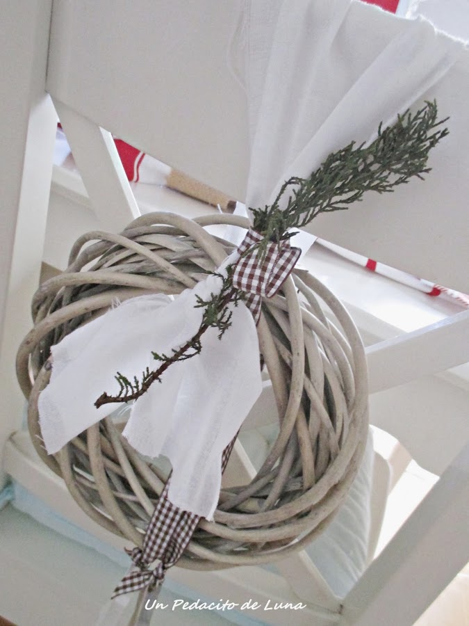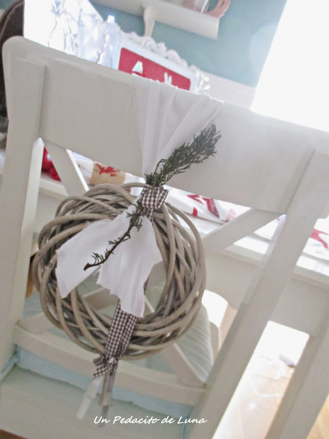 Con la emoción de preparar todo, hice también unos adornos para las sillas del comedor partiendo de una corona.