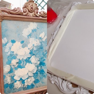 Hace un tiempo encontré un marco precioso en el rastro con una lámina en pésimas condiciones, desteñida y muy vieja, pero como lo que realmente me interesaba era el marco, me lo quedé.