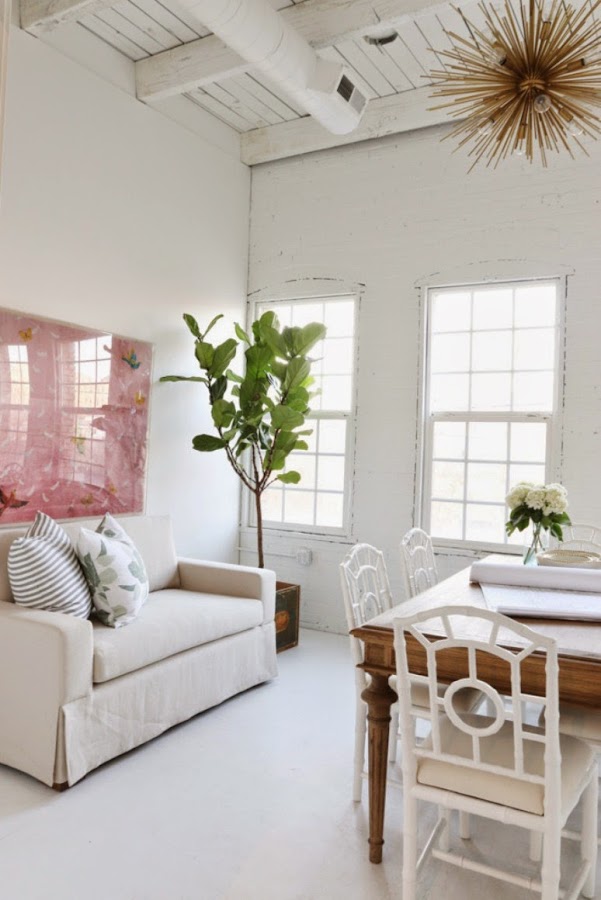 Sin duda, inspirados por la luz del sol, esta pareja ha optado por dejar que los rayos inunden las dos estancias diferenciadas: zona de trabajo y sala de espera/de reuniones, ambas con su estilo propio marcado a fuego. Lleno de detalles que lo hacen especial, como la mesa antigua, el contratiesto reciclado, piezas de arte, plantas y flores frescas... Si tienes un negocio y quieres que te echemos una mano para decorarlo, puedes contar con nuestra ayuda para hacer tu proyecto realidad. O bien, puedes escoger tus tesoros en nuestra shop online y haz que tu negocio brille como tu trabajo! Feliz jueves!!!