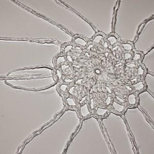 - Un detalle de Crochet tejido a gusto en el que dejemos prolongaciones de hilo que partan de cada esquina o arco...