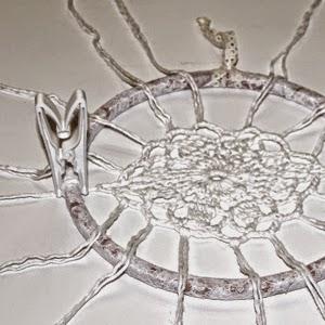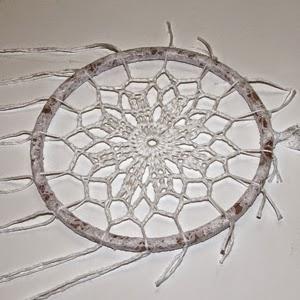 Hoy os invito a crear vuestro particular CAZASUEÑOS, utilizando básicamente, un detalle en crochet y algunas puntillas...Necesitamos