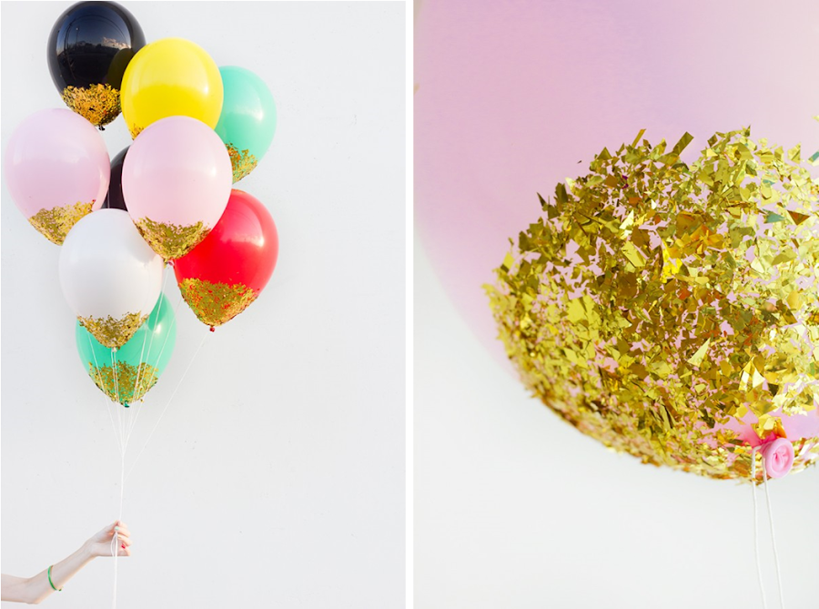 ¡Para mis hijos no hay fiesta sin globos! y en la despedida de este año en mi casa no pueden faltar. Te propongo decorarlos con confettis dorados para darles un aspecto mas festivo. En muy poco tiempo puedes convertir unos sencillos globos de colores en un elemento decorativo ideal para tu fiesta de Fin de Año. El tutorial aquí.