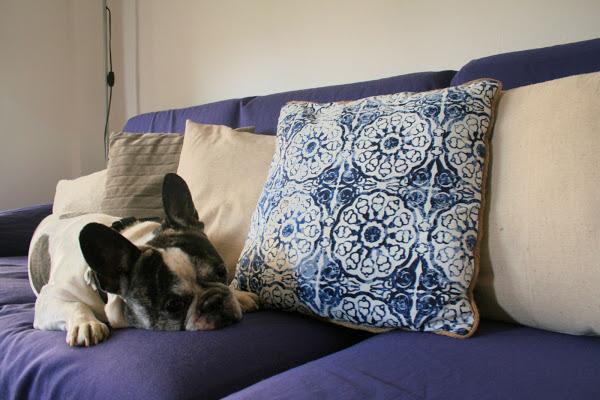 Perdonar a Rocco, el pobre hace tanto calor que esta todo chofi. El capazo y el cojín son de Primark, por si os gustan.