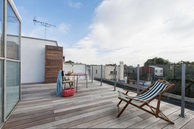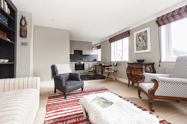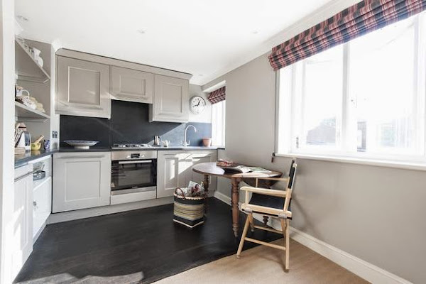 La planta principal es abierta y como el resto de habitaciones tienen un color en común?.el negro, cada vez soy más fan de las paredes de este color y con la gran cantidad de luz que tiene este apartamento me parece una muy buena elección.