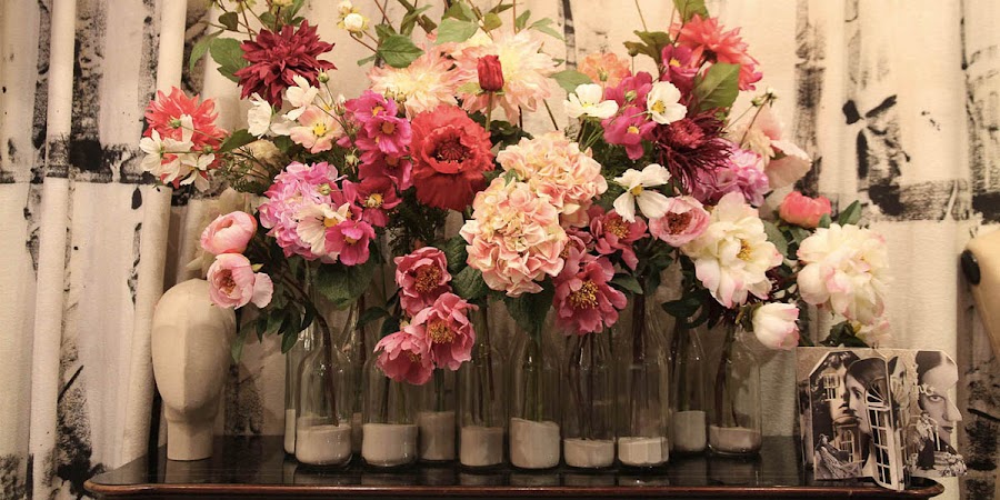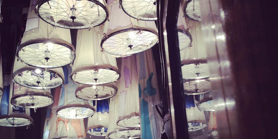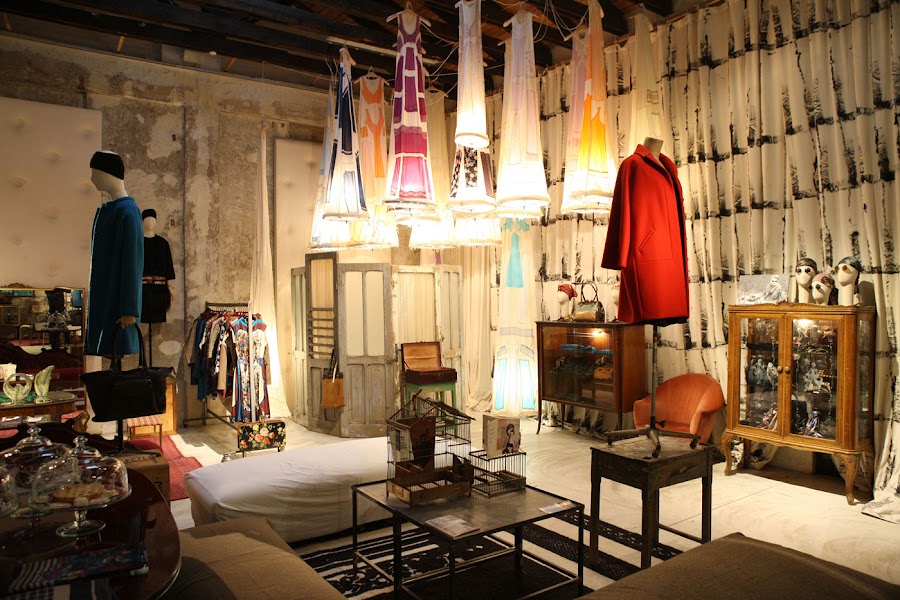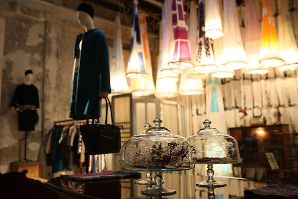 No dirán que no es para copiar unas cuantas de ideas. Las lámparas hechas a través de vestidos que están sujetos a ruedas de bici, la cantidad que flores que tiene dispuesta en la tienda que le da tanta naturalidad, las sillas antiguas junto con sus diseños... simplemente me encanta. Cuando pueda tener un negocio propio haré una mezcla propia pero sin moda, muchas telas y muchos objetos decorativos, listo para que algún visitante me haga un post en su blog de decoración y viajes. Sería cumplir un sueño.