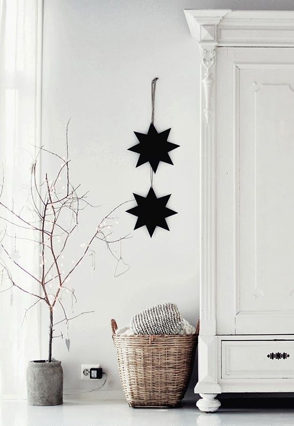 Si eres de las que pone la decoración de navidad durante ésta semana, por aquí hemos hecho un recopilatoria de ideas para que vuestra casa luzca acogedora y monísima con un punto de estilo nórdico..... puedes optar por ramas desnudas, guirnaldas de papel en tonos verdes, piñas pintadas de blanco o dorado, o estrellas 3D, tendrá un toque diferente y muy estilosa.