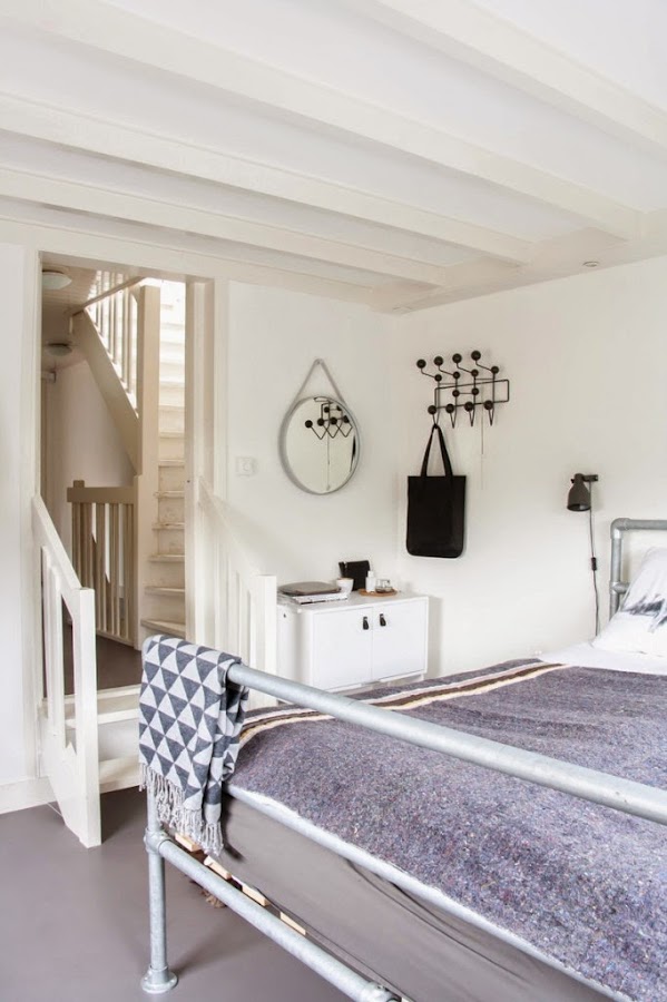 Pues hoy te muestro su casa, donde queda claramente reflejado el estilo con toques industriales en la decoración, vigas en los techos, paredes blancas con suelos oscuros y totalmente desnudas con pocos articulos de decoración.