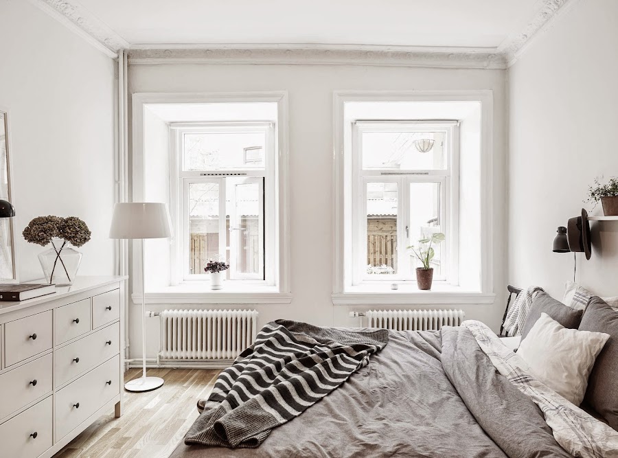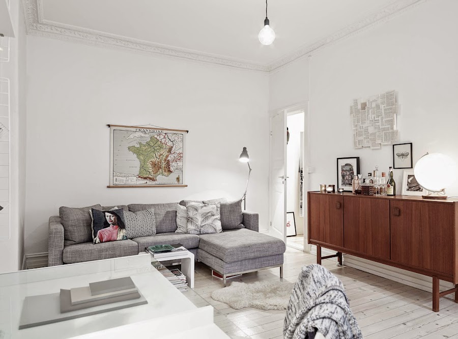 La vivienda que hoy comparto me ha traído esos recuerdos tan otoñales, imagino que será por los colores predominantes, el blanco y gris, que inundan toda la casa y que se ven salpicados tan sólo por pequeños y sutiles toques de color en algunos elementos, por otra parte, no creéis que el papel del recibidor es también de lo más otoñal? No se por qué pero a mí el estampado a cuadros siempre me ha parecido ideal para esta estación. Y ahora...me acompañáis a ver la vivienda?