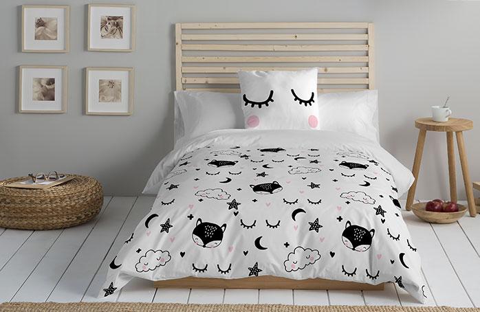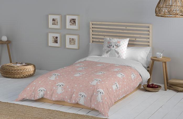 La funda nórdica ofrece muchas ventajas a la hora de personalizar el dormitorio, ya que cambiarla es un proceso muy fácil y, además, hace mucho más simple la limpieza del textil cama. La nueva marca trae propuestas tan inspiradoras como la que aparece en la funda Nórdica Sweet Home, con su original estampado de casitas; la funda Nórdica Cat, que combina gatos y rombos sobre un fondo rosa; la funda Nórdica Sweet Dreams, con un simpático dibujo de zorros y nubes o la funda Nórdica Universe, de nubes.
