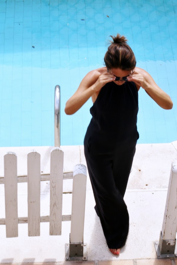Además, sería una pena estropear el elegante mono de crepe negro que