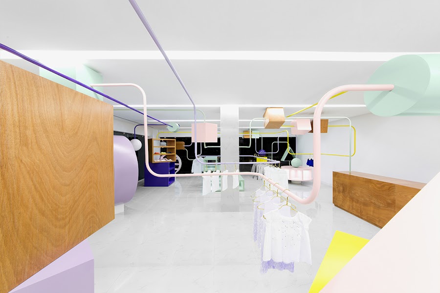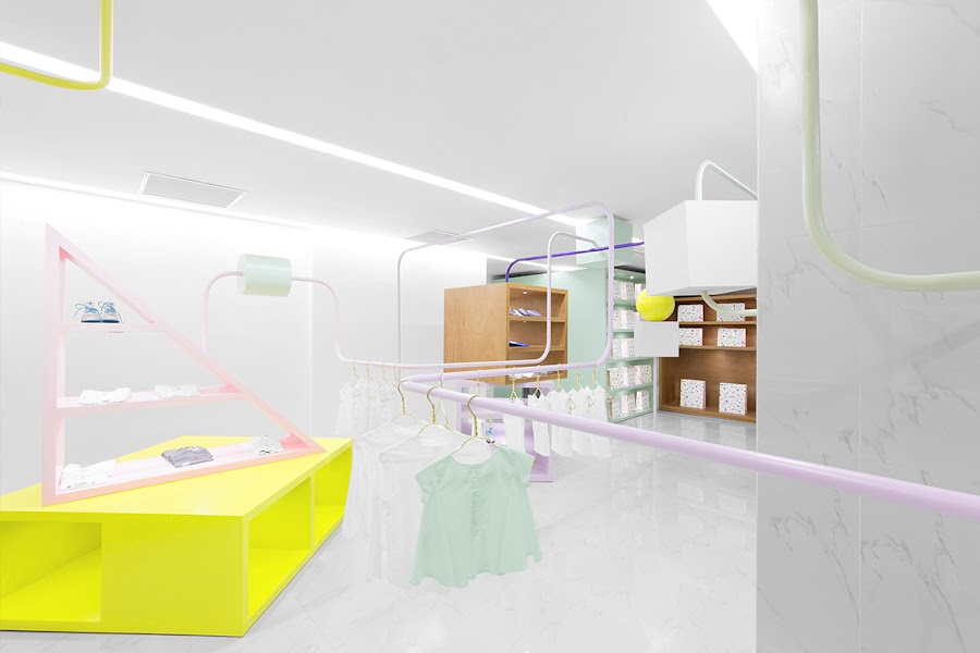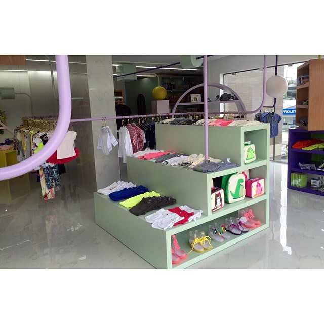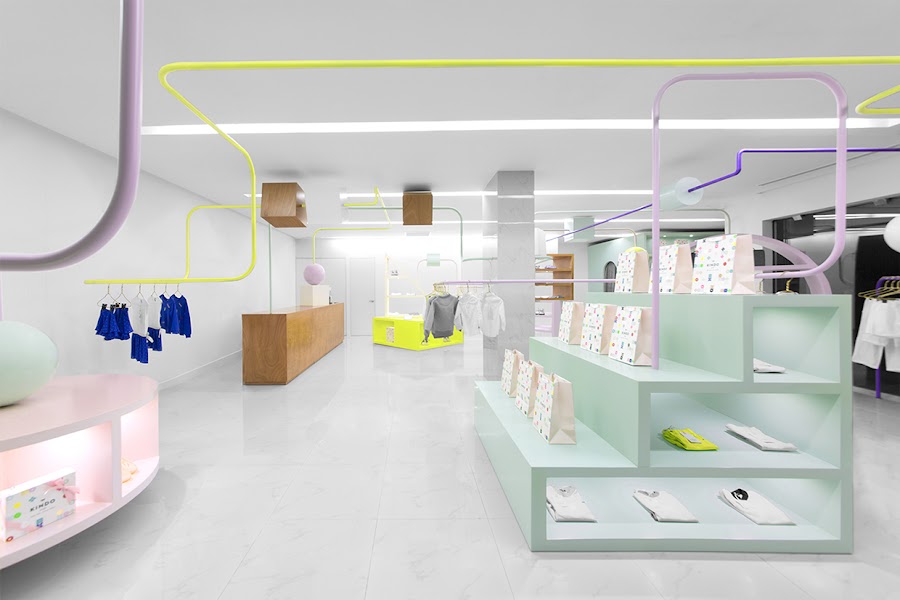 Kindo es una tienda exclusiva de ropa y accesorios para niños. En ella no sólo podrás encontrar las mejores prendas de moda para los más pequeños de la casa sino que además podrás llevar a los niños sin preocuparse de que ellos se aburran, ya que en Kindo los niños van a encontrar un salón entero de juegos con los que pasarlo bomba mientras sus padres les hacen la compra. La decoración de este precioso local ha ido también a cargo de Anagrama, la misma empresa que decoró Botanero Moritas, que sigue con la línea de hacer negocios locales muy singulares. En este caso de Kindo lo ha conseguido con una nota muy alta, ya que integrar el mobiliario de la tienda con percheros y estanterías, con formas geométricas y figuras que imitan los juguetes de los niños pequeños. Sin duda, un proyecto bonito que ha tenido la suerte de ser hoy día una realidad.