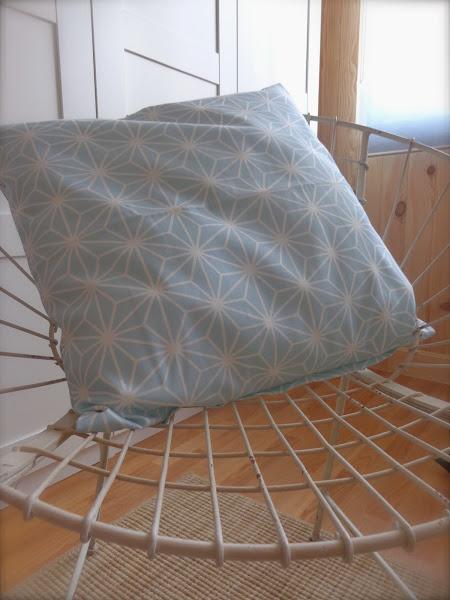 Hoy, la comparto con vosotros, decorada con tres de mis cojines favoritos, muy diferentes: