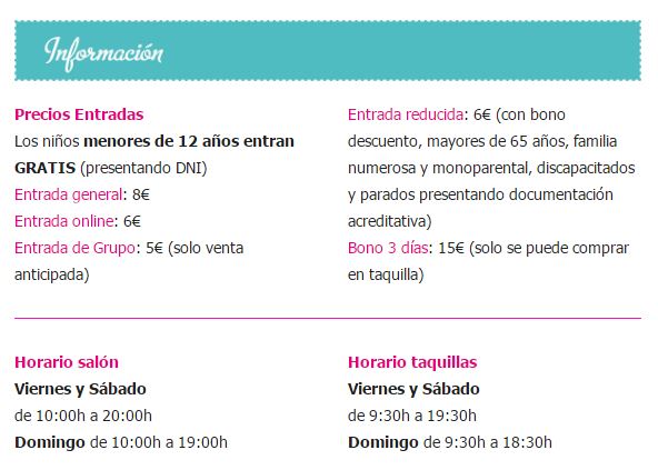 Os dejo aquí abajo toda la info para que no os perdáis detalle, horarios, precios de entrada etc..