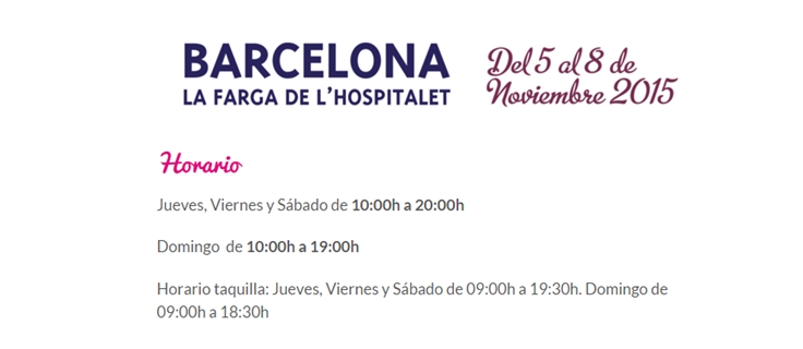 Así que aquí os dejo los horarios. Como véis el Jueves, Viernes y Sábado es de 10h a 20:00h y el domingo es de 10.00 a 19.00.