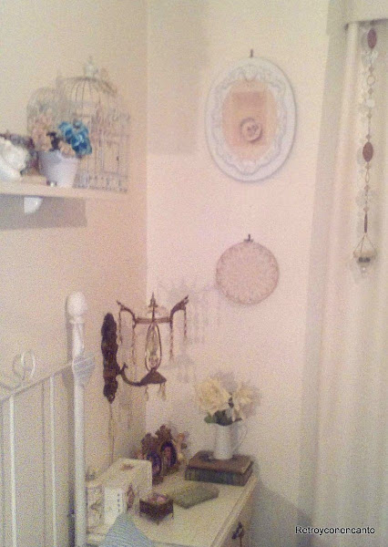 Le pedimos que nos enviara una foto una vez hubiera ubicado el cuadro. ¿Habéis visto qué habitación tan bonita tiene Nieves? Fijaos en el aplique de la pared... Nos comentó que son los mismos (tiene la pareja) que compró hace treinta años cuando se casó... ¡Si es que la que nace con gusto!