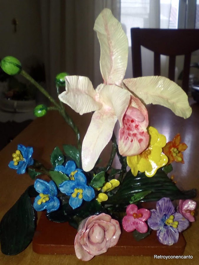 Además, nos mostró este centro de flores de porcelana, ¡hecho por ella!, el cual había regalado a su suegra hacía poco....