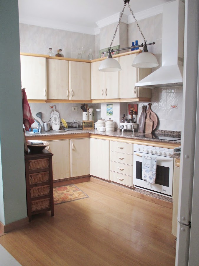 Como podréis observar, faltan muuuchos detalles, aún no he comprado el horno, ni he hecho la cortina, unos tableros que cubren los laterales de la nevera y visten el lateral de la torre de hornos, no han llegado....