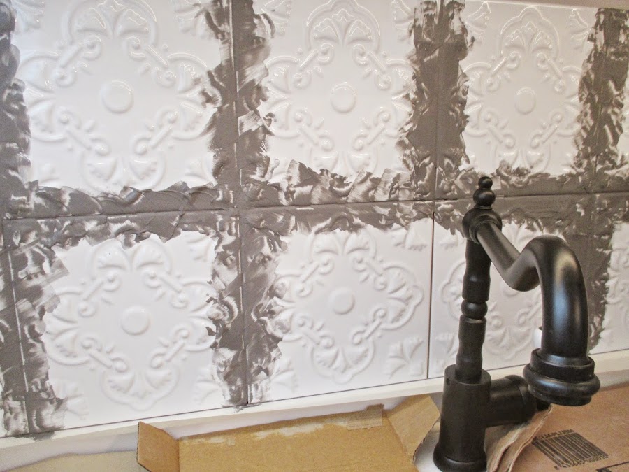Pero yo no sabía lo complicado que era aplicar la pasta en las juntas y desprenderse del resto inmediatamente antes de que secara, ardua tarea por los dibujos en relieve del azulejo.