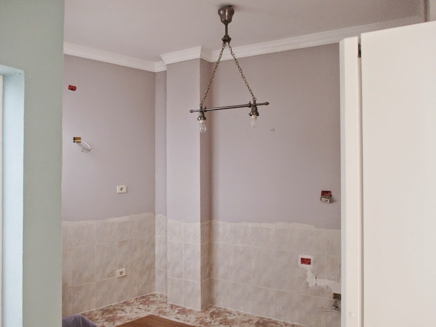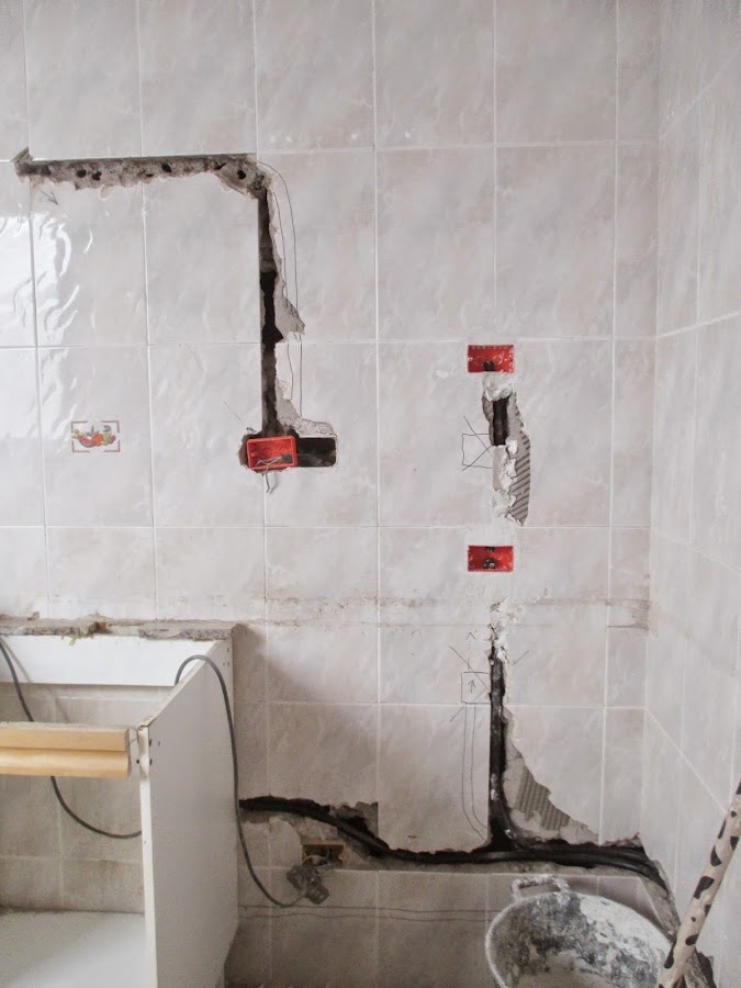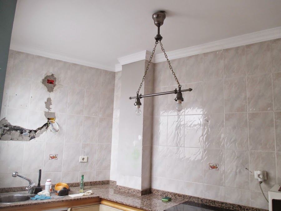 Como veis, toda la pared estaba recubierta de azulejos y se me ponía la piel de gallina de pensar en derribarlos....