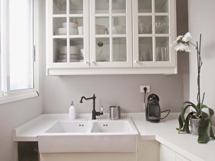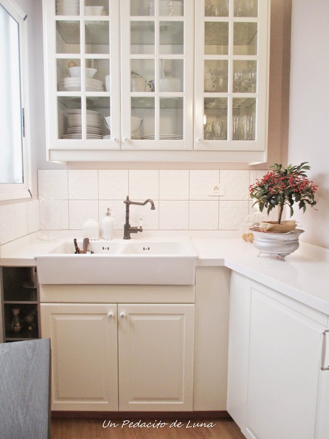 Ya que no me cabía un lavavajillas, decidí poner un fregadero grandeee, y cómo no, de porcelana, como me gustan, para dar un toque absolutamente rústico a la cocina y que, sumado al tipo de azulejo elegido, creo haber conseguido!!