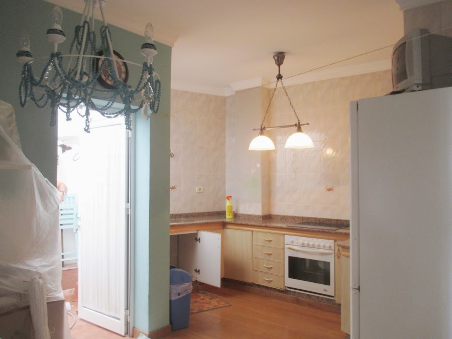 En esta foto ya habíamos desmontado los muebles de la parte de arriba de la cocina, lo fuimos haciendo en cómodos plazos el "maestro" y yo para dejarla habilitada lo máximo posible hasta la instalación de la nueva.