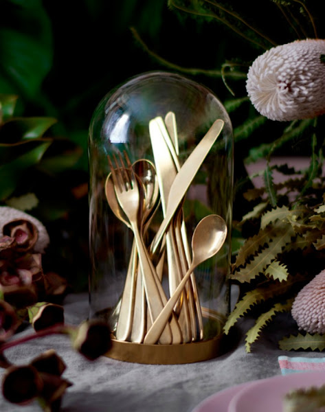 Un montón de productos en dorado, es una de las novedades chulas que nos traen este año. Desde la cubertería - que de momento han retirado porque ¡destiñe! - hasta tiestos metálicos, relojes, y un panel organizador también en oro. Es un metal que me gusta mucho, pero definitivamente en mi casa no.