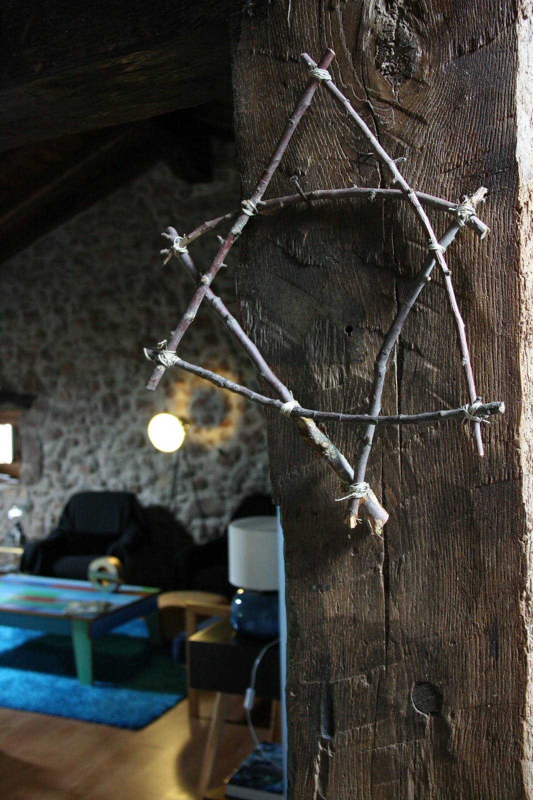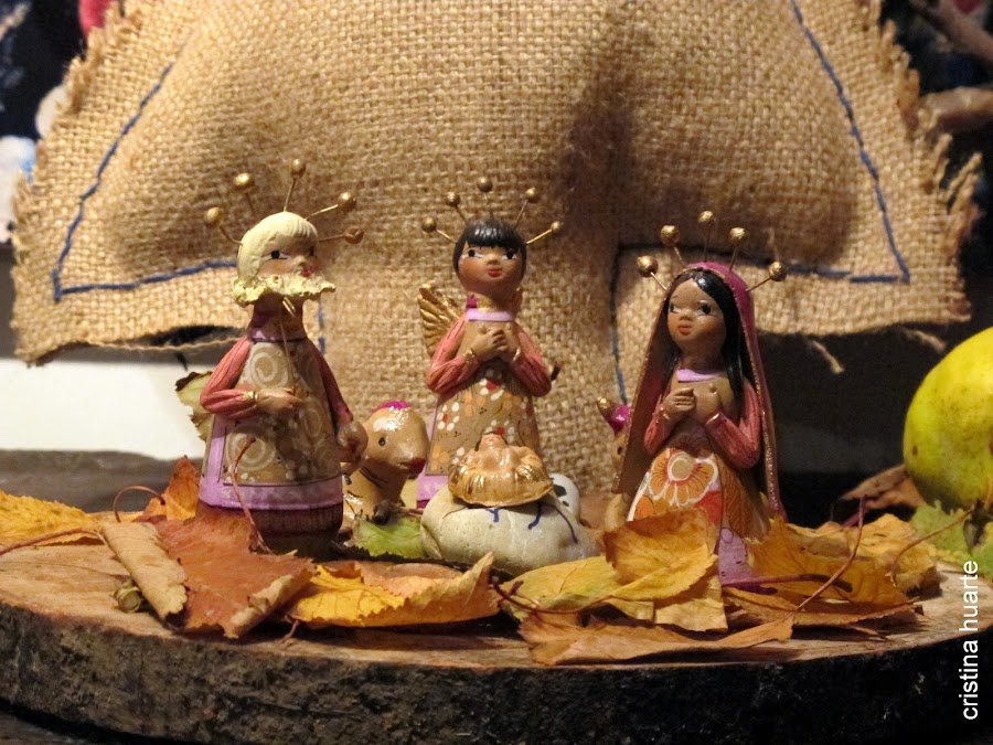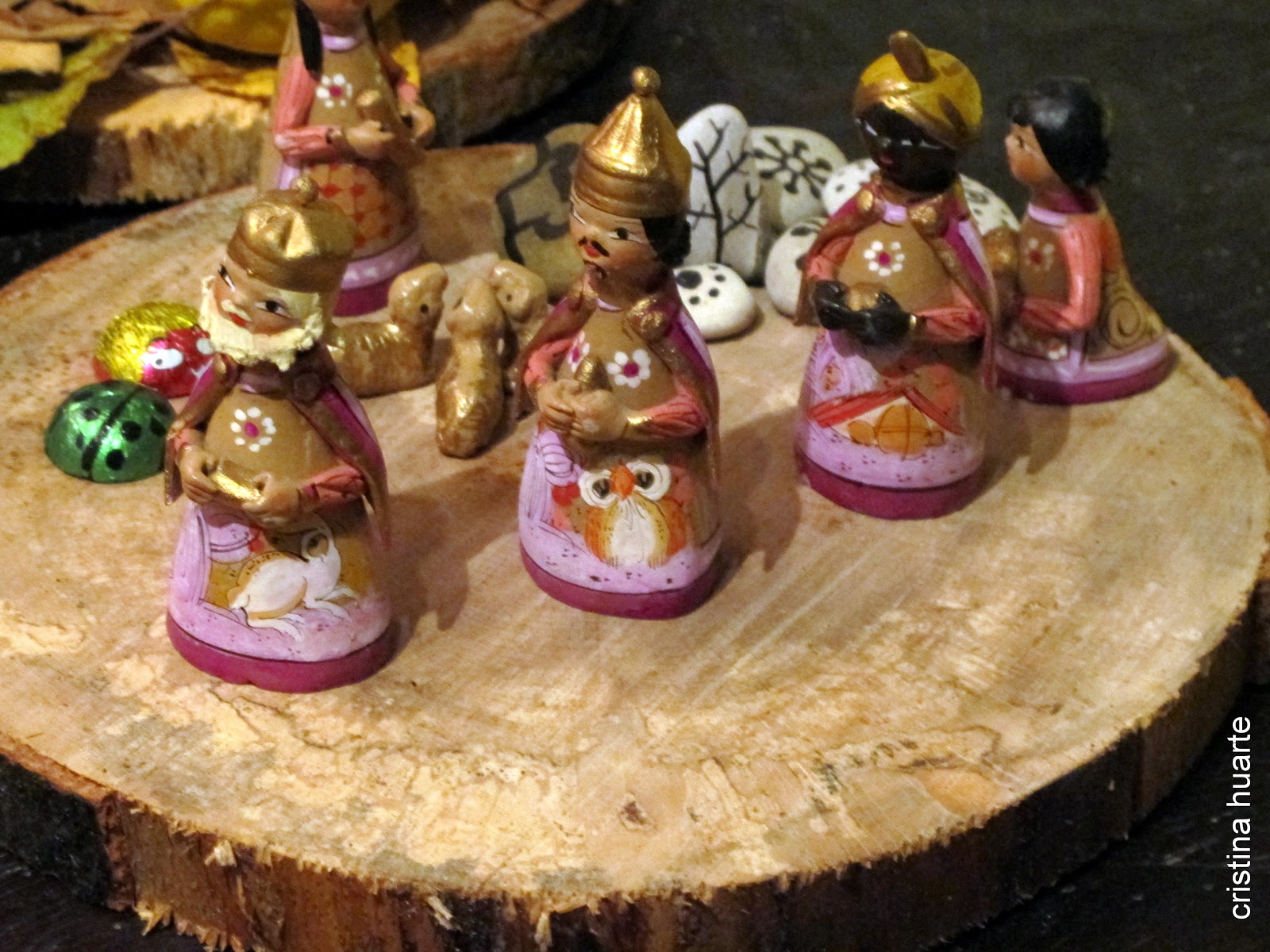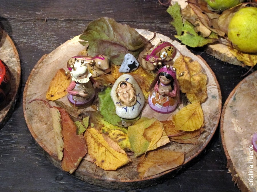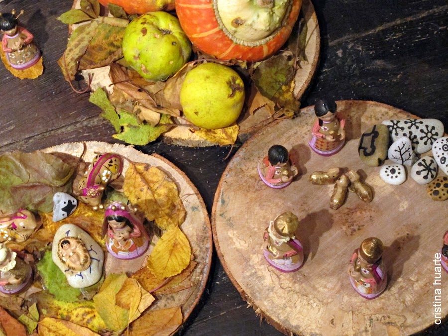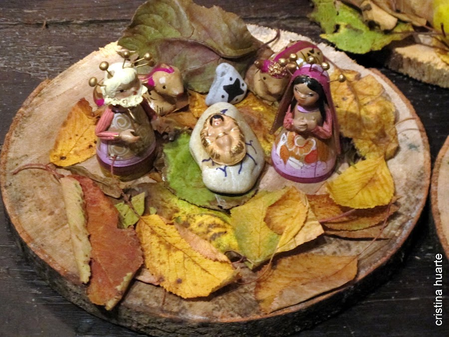 Esta vez nos ha dado por los mini troncos, los arboles de saco que hemos hecho , alguna estrella con palitos , las piedritas que hemos pintado , el Belén de siempre y por supuesto las velas y la guirnalda de la tienda de muebleando.